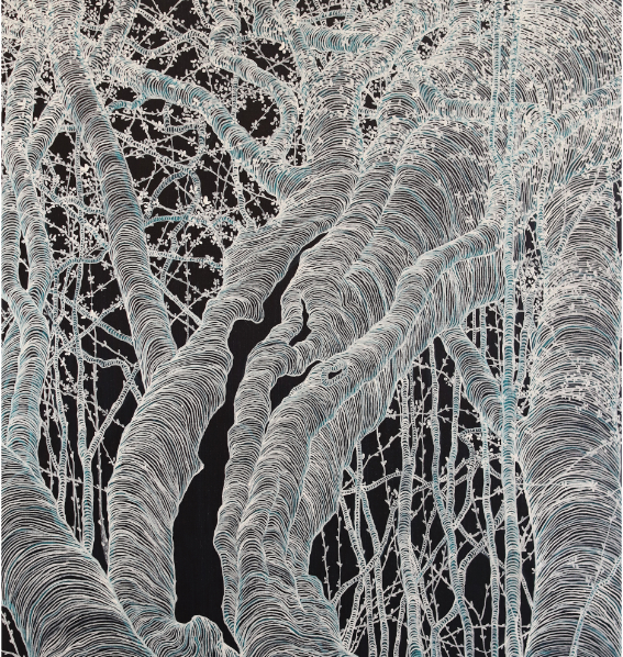 Hong Il-hwa Active in both France and Korea, Hong Il-hwa has held nearly 50 solo exhibitions. His recent work utilizes the metaphor of a tree's life cycle—specifically the concepts of Noon (emergence), Eum (bud) and Ssak (sprout). He depicts the struggle of life emerging from the cold, where the white Eum pushes through the bark to eventually turn blue and take shape as it receives sunlight. He is also a member of the Korean Printmakers Association and has produced murals for Seoul Grand Park Zoo.